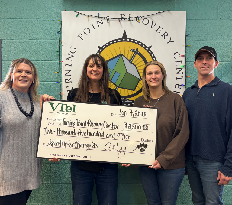 VTel customers raised a total of $845.34 in 2025 by choosing to round up their monthly VTel bill to the nearest whole dollar. Inspired by our customers’ commitment to giving back, VTel doubled this year’s total to make an even $2,500.